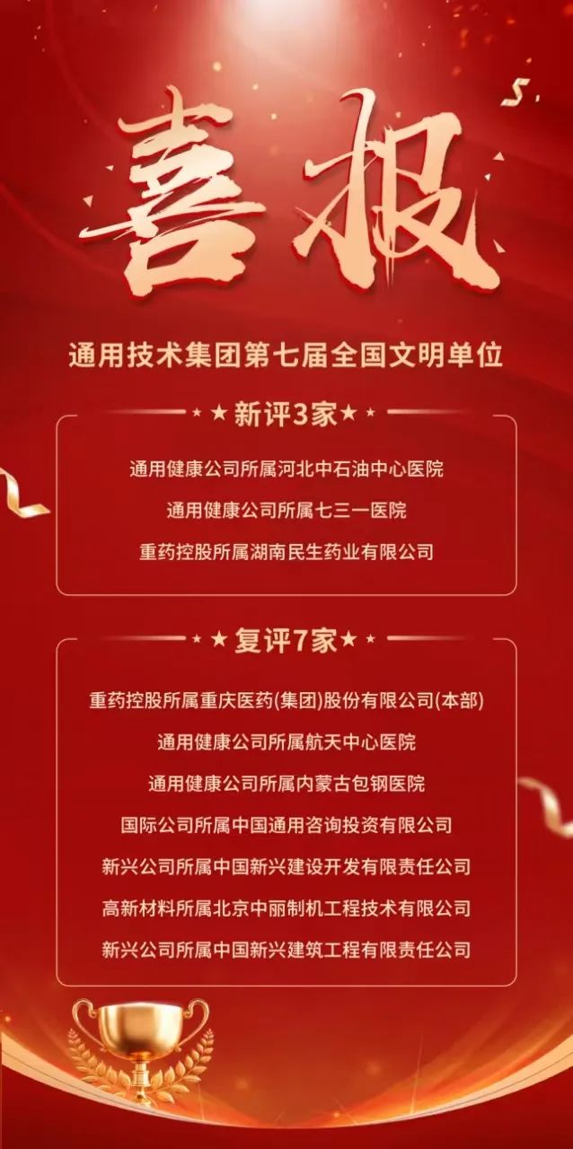 至(zhi)此,通用(yong)技術集團共有10家單位被授予全國文明(ming)單位稱(cheng)號。